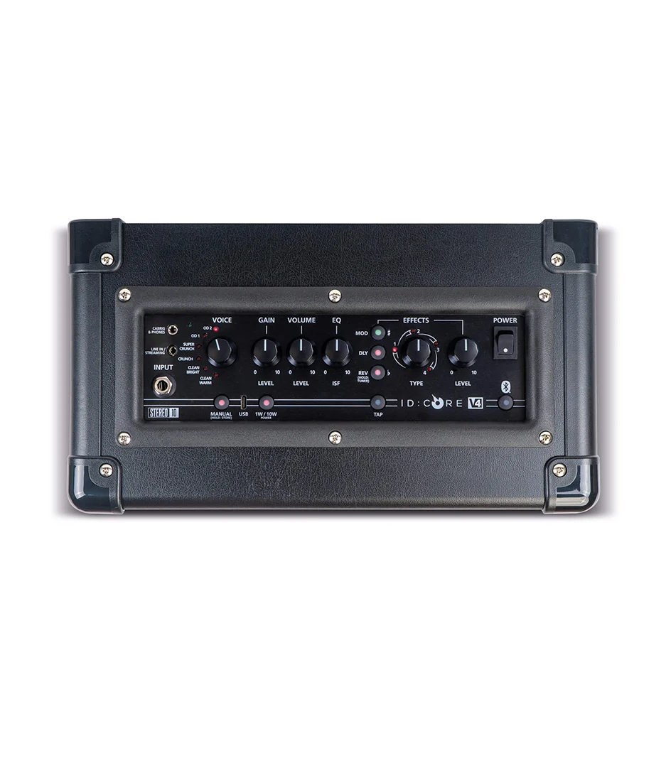 The Blackstar ID:Core10 V4 is a 10-watt stereo digital combo amplifier that blends intuitive, traditional controls with powerful programmability. Featuring six versatile voices—Clean Warm, Clean Bright, Crunch, Super Crunch, OD1, and OD2—plus Blackstar’s patented ISF tone shaping, it delivers everything from sparkling cleans to high-gain drive.