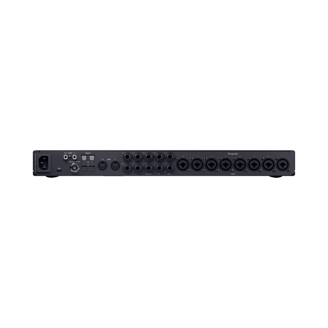 | Analog Audio I/O | 2x Combo XLR-1/4″ TRS Balanced/Unbalanced Mic/Line/Hi-Z Input (Front Panel)6x Combo XLR-1/4″ TRS Balanced/Unbalanced Mic/Line Input10x 1/4″ TRS Line Output2x 1/4″ TRS Headphone Output |