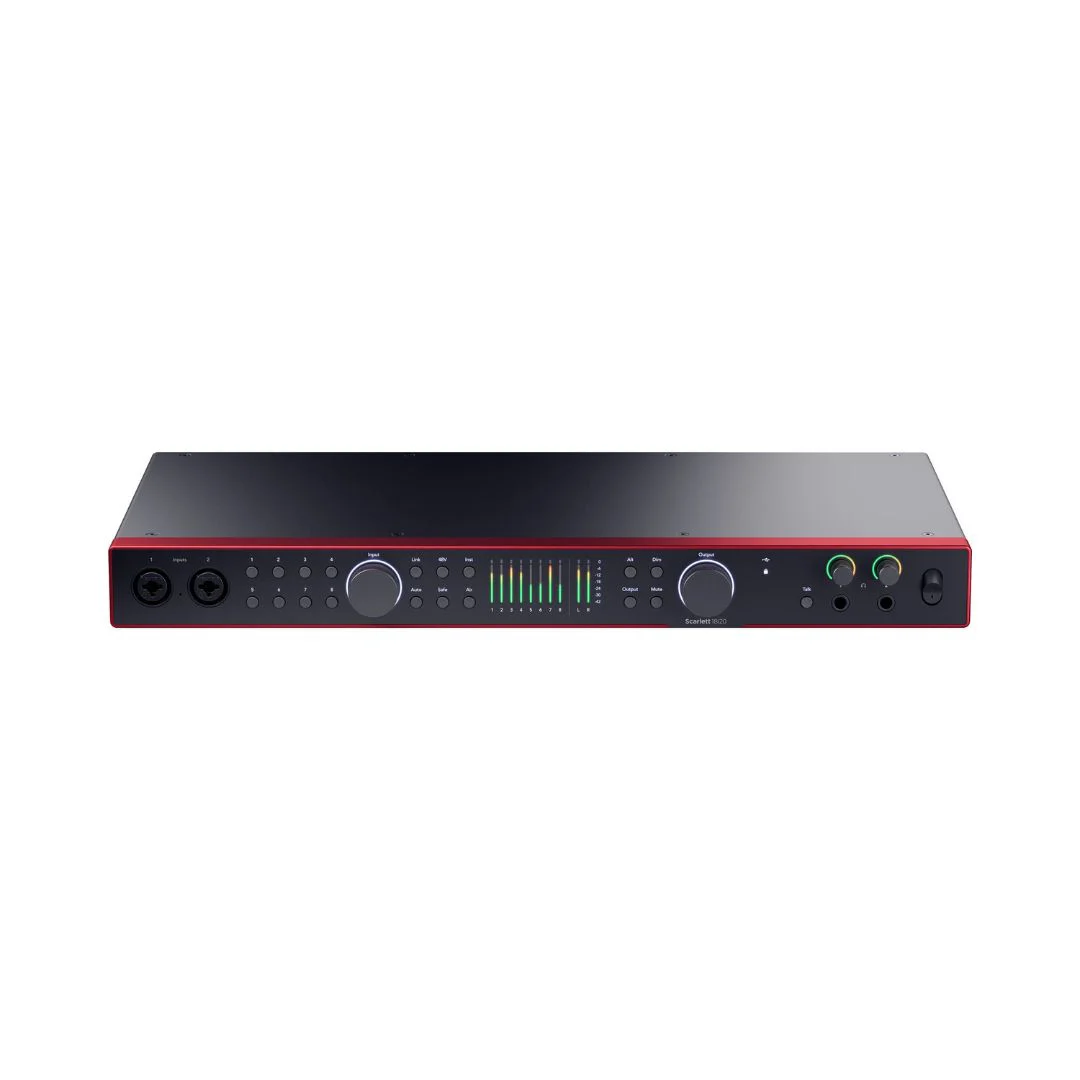 Featuring eight high-performance mic preamps with up to 69 dB gain, the Scarlett 18i20 delivers studio-quality recordings with enhanced detail and clarity. Air Mode adds brightness and harmonic richness, emulating classic studio consoles for professional vocal and instrument capture.