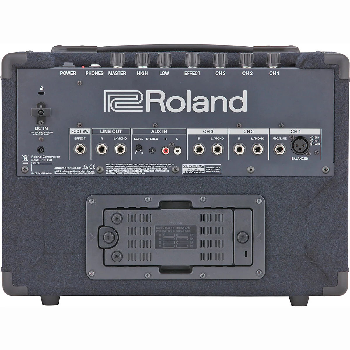 The KC-220 delivers full-range stereo sound with 30 watts of power (15 watts x 2), two newly designed 6.5-inch speakers, and two custom tweeters. Paired with an advanced power section optimized for efficient battery operation, the KC-220 smoothly reproduces the wide frequency range of 88-note stage pianos, organs, and synthesizers, as well as rhythm machines and other electronic instruments.