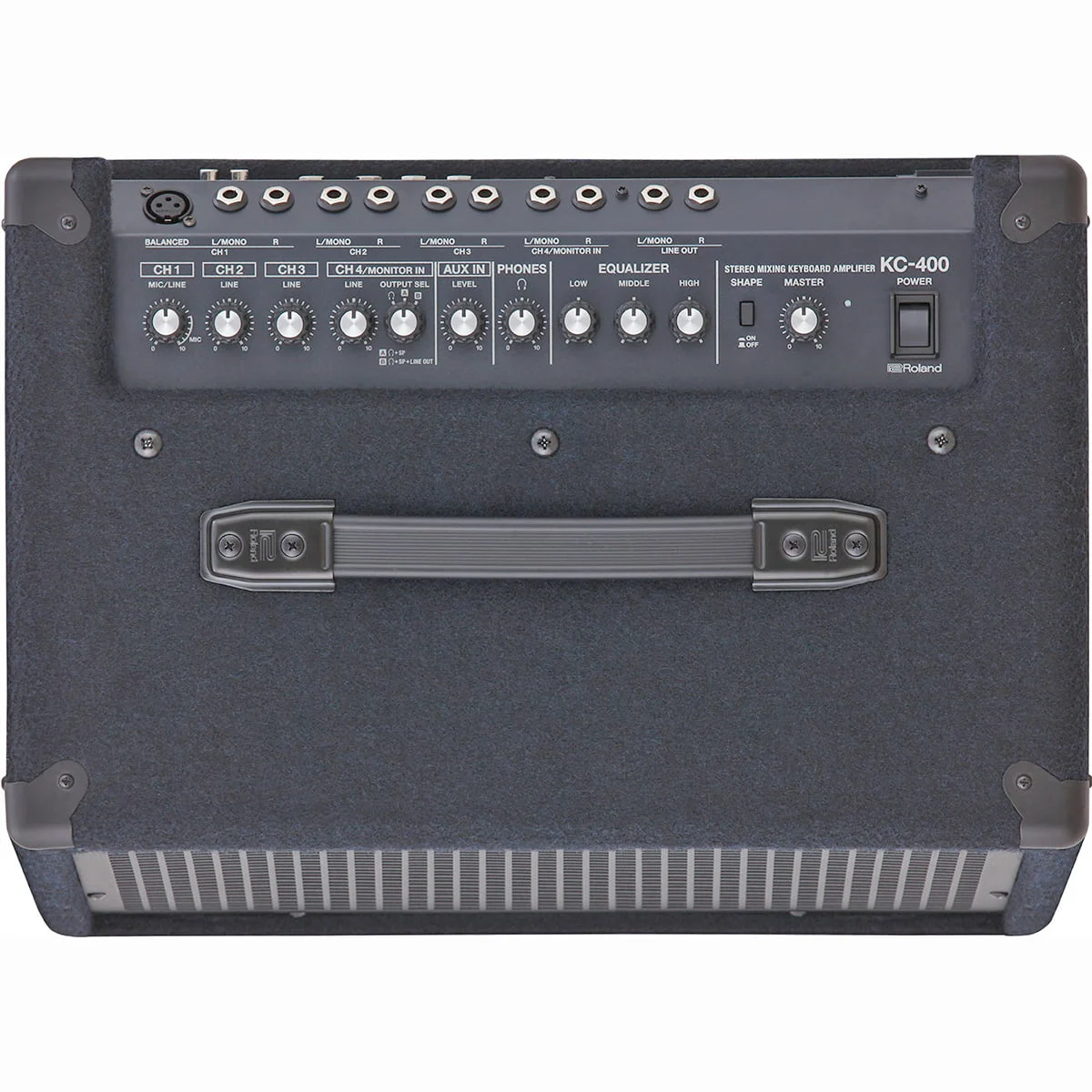 The Roland KC-400 offers powerful, punchy sound and full-range audio reproduction in a compact amp with 150 watts of power. The cabinet features Roland’s patented twin bass-reflex design, providing extended low-frequency response without distortion. Paired with the newly redesigned power section, the KC-400 delivers even better bass performance for amplifying 88-note stage pianos, organs, and synthesizers, plus rhythm machines and other electronic instruments. An added benefit of the efficient new power section is reduced weight, making the KC-400 easier to carry from gig to gig.