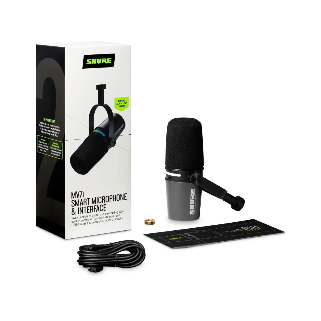 Inspired by the legendary SM7B, the MV7i captures clear, professional-grade audio with its cardioid dynamic capsule and up to 60 dB of gain. Shure’s advanced DSP tools—including Auto Level Mode, Real-Time Denoiser, and Digital Popper Stopper™—deliver consistent results in any environment.
